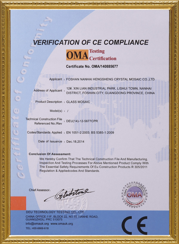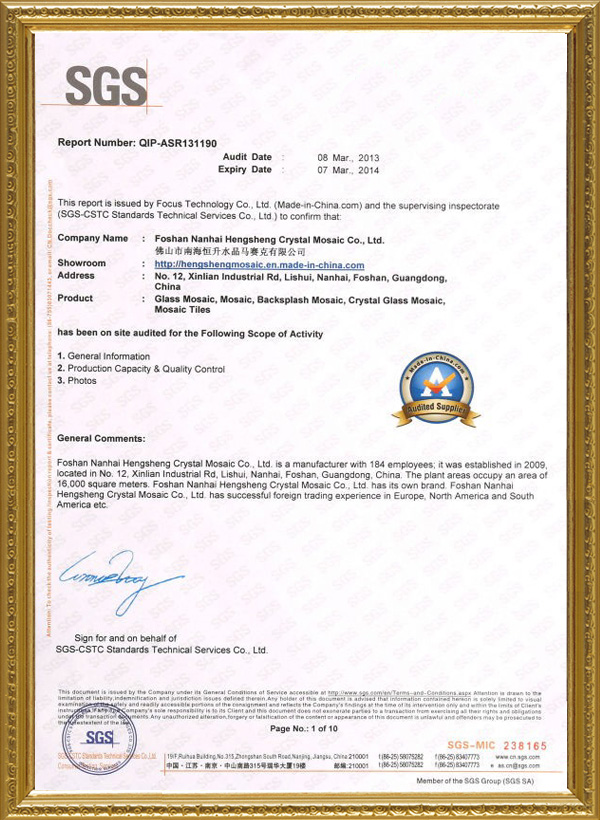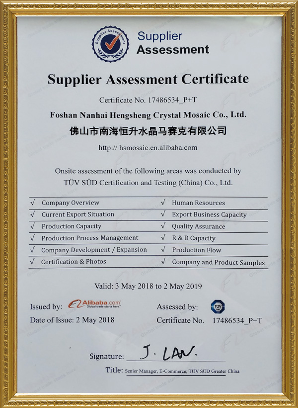 Since 2008, HengSheng specializes in producing all kinds of glass mosaic. We have 150+ workers and our factory covers around 16,000 sqm. Our goods are sold over 100 countries/areas throughout the world and North America, Europe, Middle East are our main markets.
